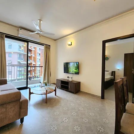 The 59 m² Candolim 1Bhk Vacation Rental With Pool Balcony Parking And Wifi apartment features views of the inner courtyard and is situated about a 20-minute walk from the Church of Our Lady of Hope. Guests can make the most of their stay at this apartment by taking part in activities like billiards.
